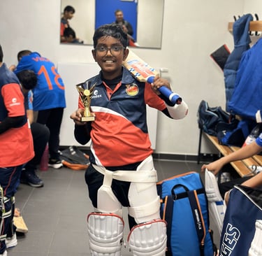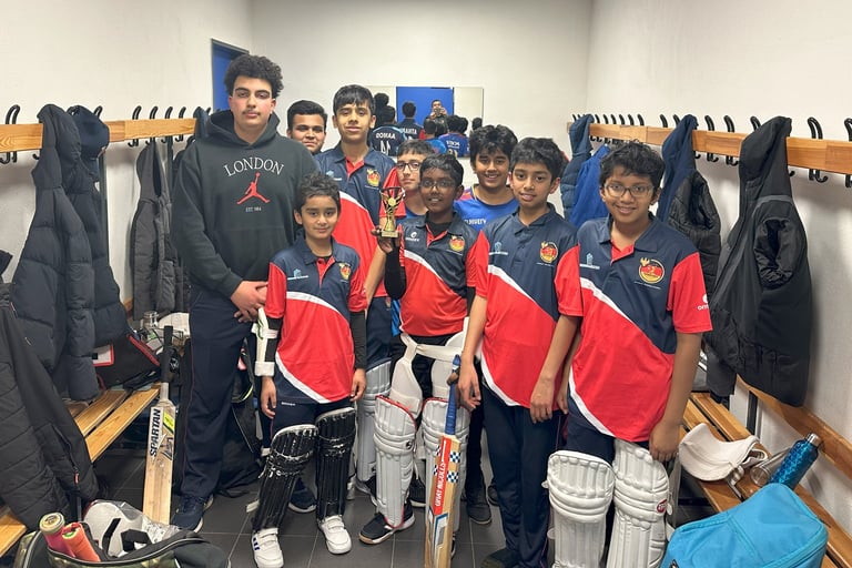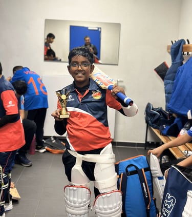Our FICA U15 team, led by inspiring Josh reached the semifinals of RheinMain Cup 10 tournament at ESRM. Teams from Germany and other EU countries participated in the tournament. Our boys played some amazing cricket and showed brilliant individual and team performances. With the mix of 9 years old and couple of 10 years old, it is an achievement to beat team better in the physical attributes with sheer resilience and determination. Outstanding performances of Josh and Nithilan, along with crucial spells by Kiaan helped us reach the semis. With the Allrounder performances with bat, ball and in wicketkeeping Tarun deservingly selected as a 'FICA player of the tournament' Boys hope to win the cup next time and have already have a roadmap jotted out to achieve it.